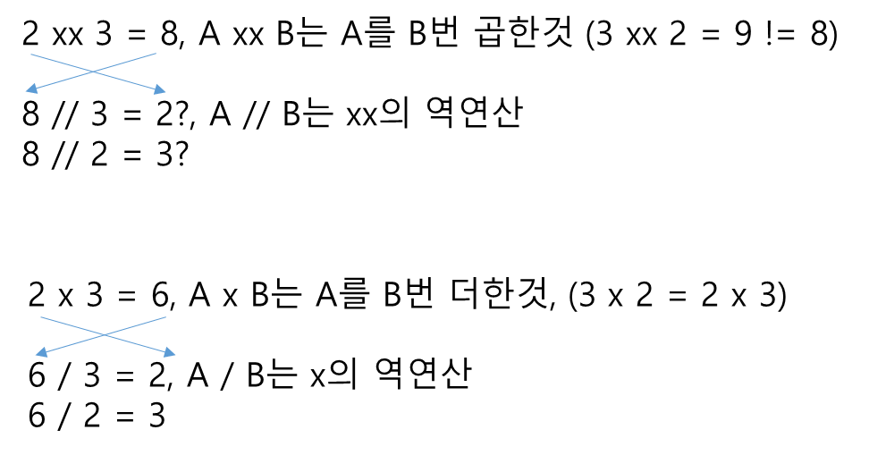 다만, 우리는 이 현상을 이미 뺄셈과 나눗셈에서 경험했다. 다만 이 둘은 역연산으로써 정의된 특이한 점이 있어서 대칭에서 태어난 연산들인데, 이 확장 곱셈인 지수는 곧바로 교환법칙이 성립하지 않는다. 이 부분은 좀더 탐구해볼 필요가 있다.
