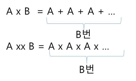위 곱셈과 나눗셈은 이를 한번 더 반복하는 형태를 통해 xx, //로 묘사해볼 수 있다. 눈치 챘다시피 xx는 지수(제곱)이고, //는 로그계산과 비슷하다.